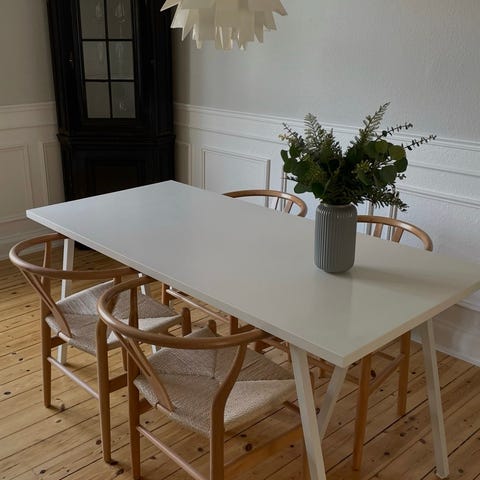Bordbenene er massive sæbebehandlet egetræsben.
