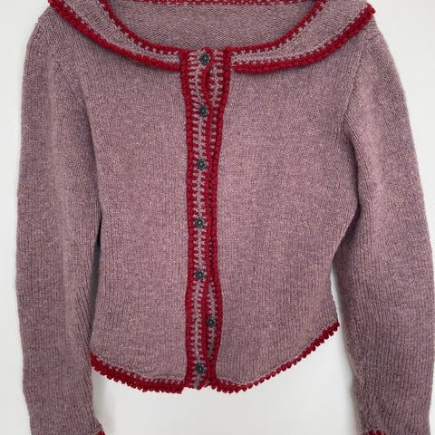 cardigan til dame i str. M. Cardiganen er blå og fremstillet i polyester. Den har hulmønster og ribkanter samt knaplukning foran. Modellen er kortere i længden med lange ærmer. Velegnet som let overdel til hverdag eller over kjoler og toppe.