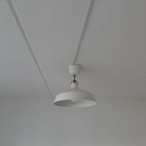 Fin loftlampe i cremehvid, giver et godt lys.