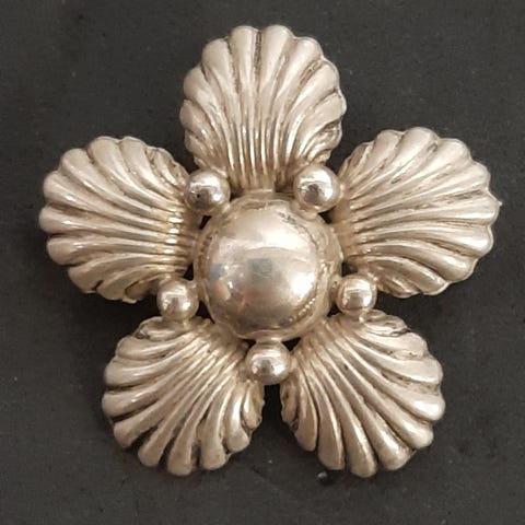 Ældre broche, stemplet 925, sølv, et stort S og noget jeg ikke kan læse. Mener den er norsk. I filigran stil. Alder ukendt. Ved kun den er af ældre dato.