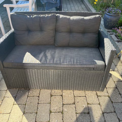 Havesofa til salg. Mål: b 120, d 70 og højde bagtil 79 og fortil 36