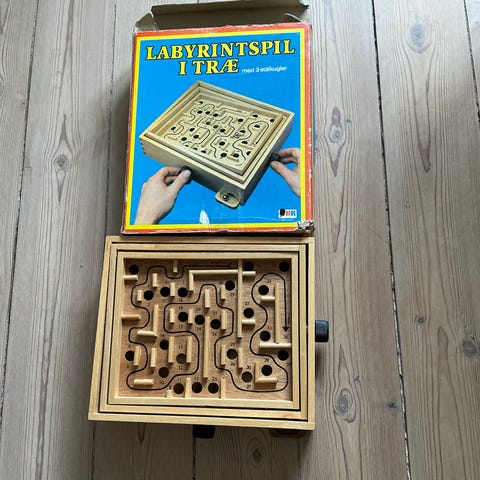 Ubrugt labyrint spil, men æsken er slidt af at ligge længe.