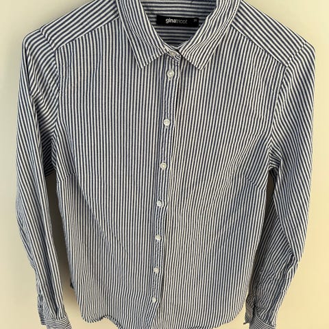 Hvid skjorte med blå striber på opsmøg og i krave 100% bomuld.
