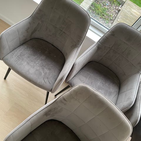 Sælger disse spisebordsstole, 3 stk, velour grå, købt fra ilva.