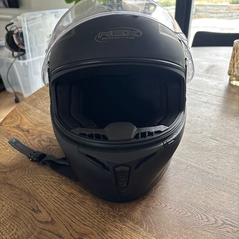 Nex motorcykelhjelm / Knallerthjelm i størrelse XL med bluetooth fra 2025. Den er som ny der er meget små brugspor, godt egenet til knallert / mc, fronten kan åbnes for frisk luft