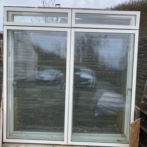 Skydedør med glasfelter hvid