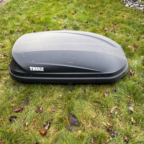 Thule Alpine 100 tagboks i grå. Aerodynamisk, aflang model egnet til montering på tagbøjler på personbil. Velegnet til ekstra bagage, ski eller lignende udstyr på bilture. Tagboksen har låg, der åbnes opad, og er konstrueret i hård plast for beskyttelse af indholdet under kørsel og opbevaring.