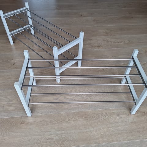 Skoreol i metal med flere hylder til opbevaring af sko. Velegnet til entré, garderobe eller bryggers for organiseret opbevaring af fodtøj. B56xH22xD22 cm.