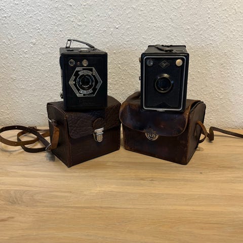 Agfa ISO-PAK C kamera fra 1969 og Ricoh XF-30 fra 1985. Ved ikke, om de virker.