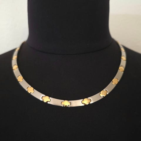 Meget fint armbånd fra Inox i stål med forgyldte led og klare sten.