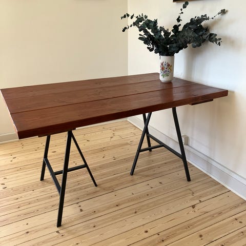 Bordplade med to mittback ikea bukke. Kan indstilles i højden.