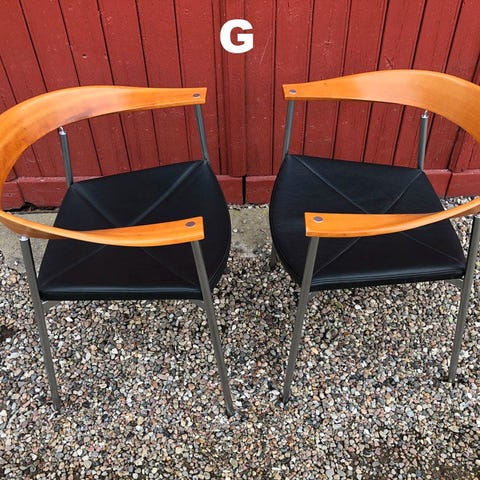 stolene er med armlæn og elegante buede aluminiumsfødder. Stolene imponerer med deres livlige elegance.