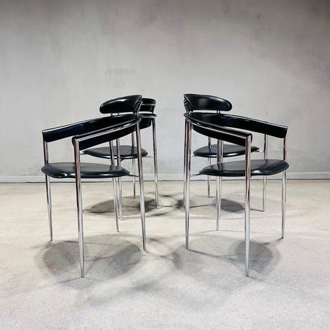 Den italienske designer Luigi Origlia designede disse stole i 80'erne og er kendt for sine elegante og luftige linjer.