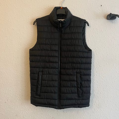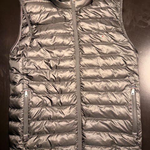 Sort dunvest i fin stand. Logo på ryggen har en lille slitage på H’et men det er kun i trykket, ikke stoffet. God stand, har været brugt maks 10 gange.