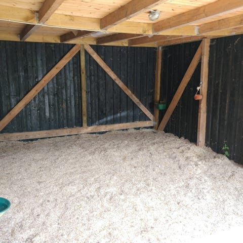 - Stort løsdrifthus. Frostsikker vandkop. Halmbund på fast bund i vinterperioden.