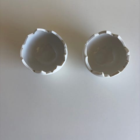 "Singular" - John Sebastian for Holmegaard lysestager i hvidt materiale. Sæt med to lysestager med organisk, bølget form og hul i midten til lys. Velegnet til brug på bord eller hylde som funktionel belysning og dekoration i hjemmet.