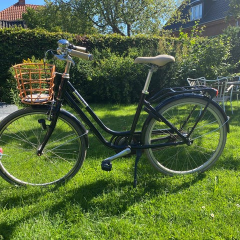Cykel med barnesæde og frontkurv