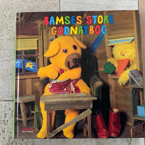 Bamsebøgerne "Godt klaret, Albert!" børnebog. Hardback med rød forside og illustration af bamsen Albert med pokal. Indeholder illustrerede sider med tekst og tegninger af dyr og Albert i forskellige situationer. Velegnet som højtlæsningsbog til børn.