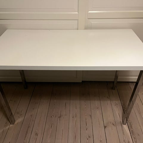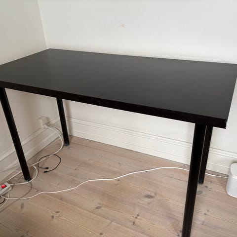 Sælger drengens skrivebord, der er blevet for småt til ham. Lidt ridser og skrammer i bordpladen men ikke noget af betydning. Se billede. Passer fint som gamerbord i et børneværelse. Højden er 84 cm ved bagpladen.