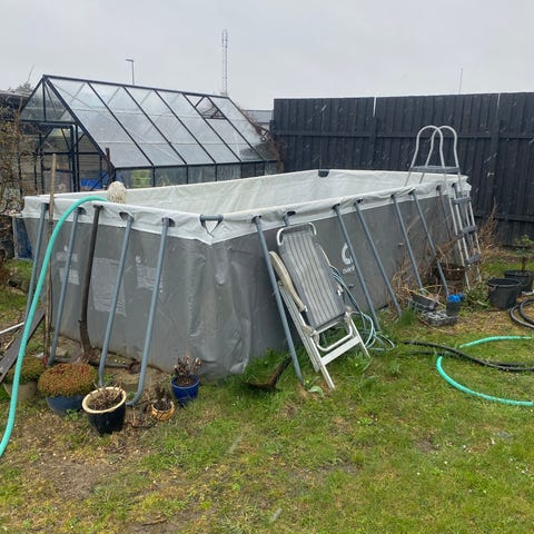 Helt ny nedgravningspool Ibiza 3,20x5,25x1,5 den er stadig i kasser dog har vi måtte tage nogle små ting til vores gl pool men sælges derfor billigt