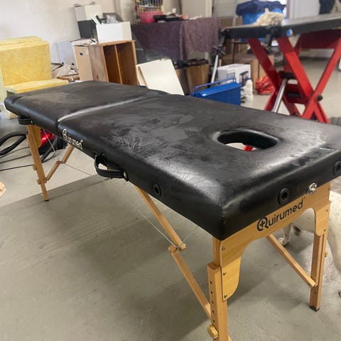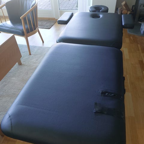 Massage/behandlingbriks fra Living Earth Crafts i blå med medfølgende bæretaske.