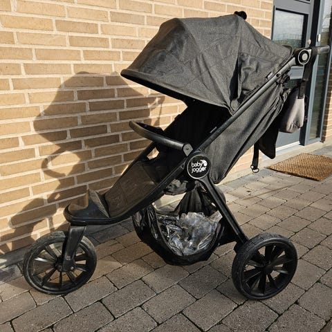 Baby Jogger City Elite 2 klapvogn med tilhørende bøjle, styrtaske og regnslag.
