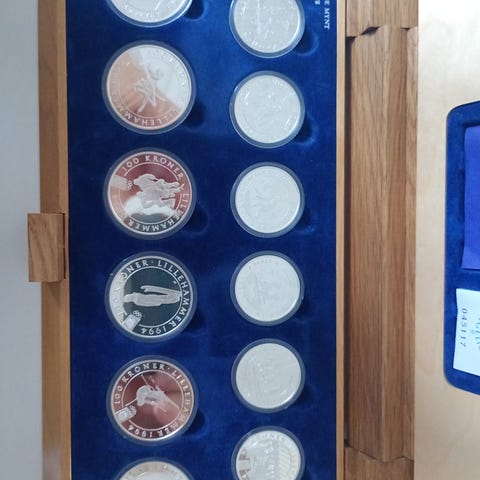 • 16 stk. 999‰ sølv – 31,1 gram pr. stk. (500 kr., 200 kr., 100 kr. og 10 kr. mønter)