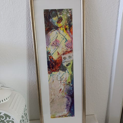 Indrammet Inge Hørup plakat, “Nu mangler vi kun lidt strengespil” fra 92. Rammen måler 62,5 cm x 76 cm.