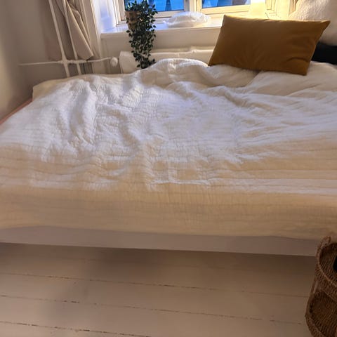 Sælger denne 140cm x 200cm kontinentalseng med topmadras da jeg skal flytte. Super fin stand. Fra bedre nætter.