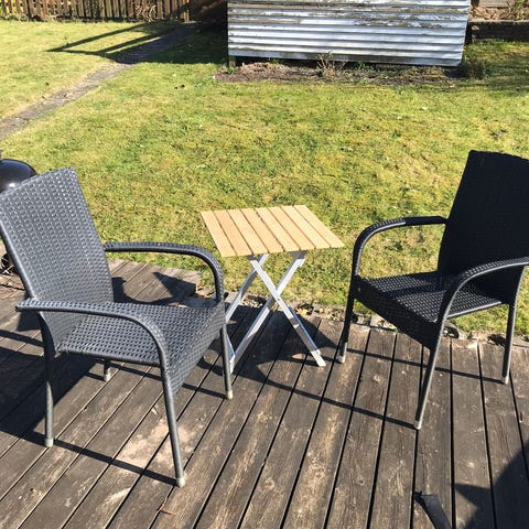 Sammenklappelig plantereol i træ. Tre hylder. Højde udslået 80 cm, bredde 45, dybde bund 70 cm.