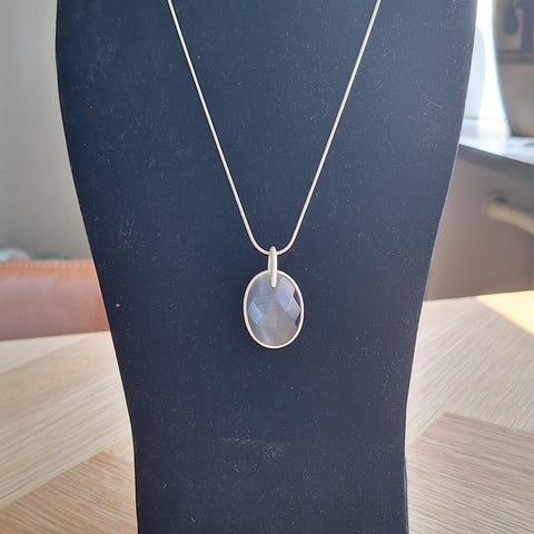 Super flot guldfarvet halskæde, med facetsleben, dråbeformet similisten.