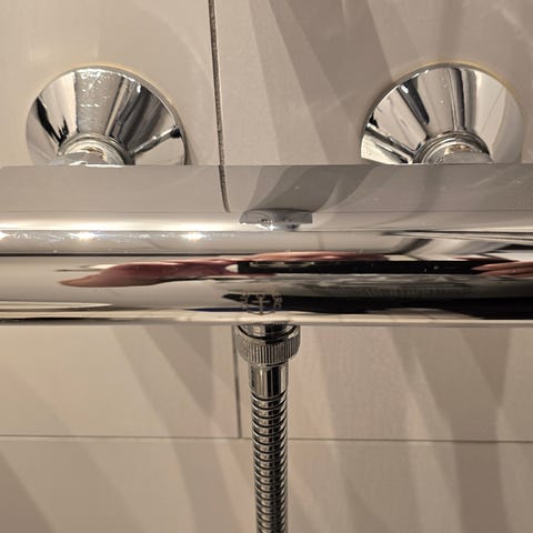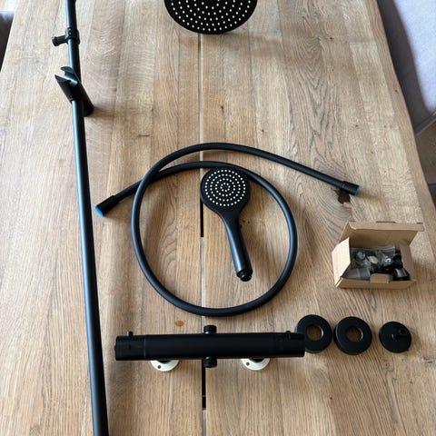 Brusesæt med blandingsbatteri og indstillelig stang, stort regnvands bruser og håndbruser, diverse monterings fittings