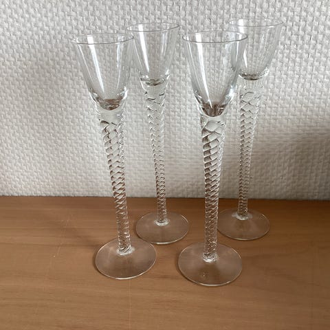 Holmegaard Twist ( Amager twist?) høj snapseglas. De er gamle. Designet af Jacob E Bang .