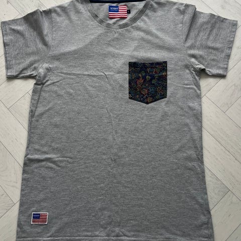 Coca-Cola T-shirt i grå farve til herre, størrelse S. T-shirten har et tryk af julemanden, perfekt til afslappet brug.