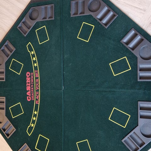 Pokerbord grønt filt ovalt med polstret kant