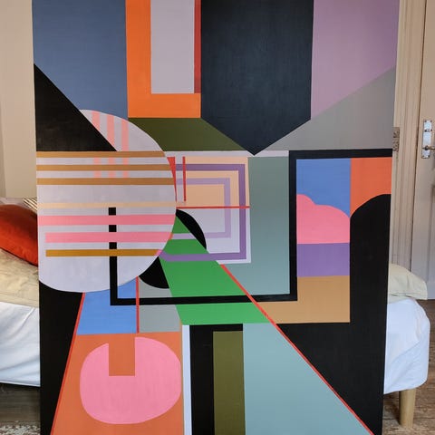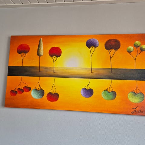 “Solnedgang” Stort akryl maleri i flotte farver kr 1200