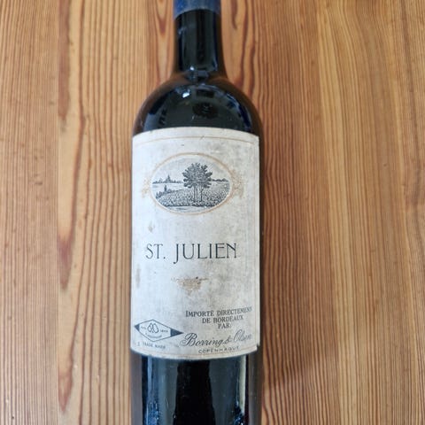 En flaske Chateau Rauzan-Segla, 2 Cru Classé, Margaux, 1984 sælges for 625 kr., som betales kontant eller MobilePay ved afhentning fra adresse.