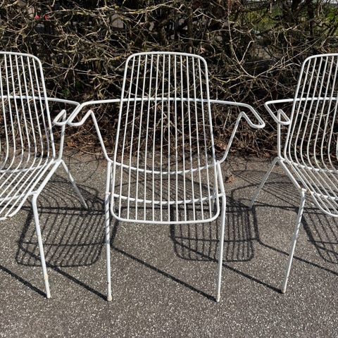 Havestol metal stel med plastiksnor sort og hvid
