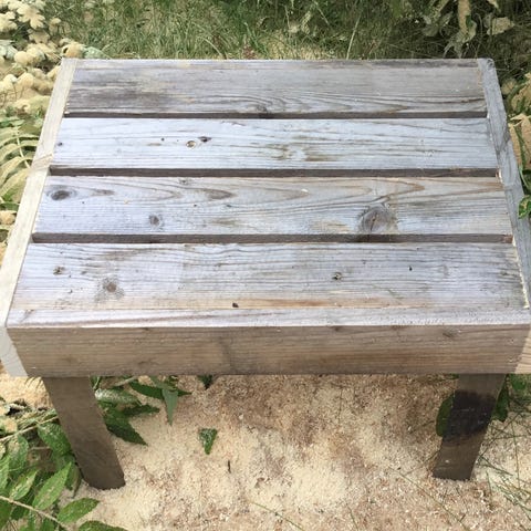 Bordpladerne er en urskive (fra JYSK), som er i træ og belagt med papir, som selvfølgelig tåler aftørring. Ben og runde klodser i fyrretræ.