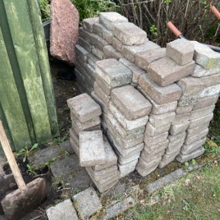 Brosten til belægning i grå beton. Stenene egner sig til fx kantafgrænsning, mindre gangarealer eller reparation af eksisterende belægning. Leveres som blandet bunke, som vist på billederne.