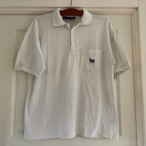 Super flot råhvid polo med sort palme mønster