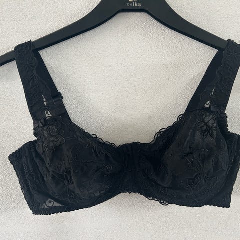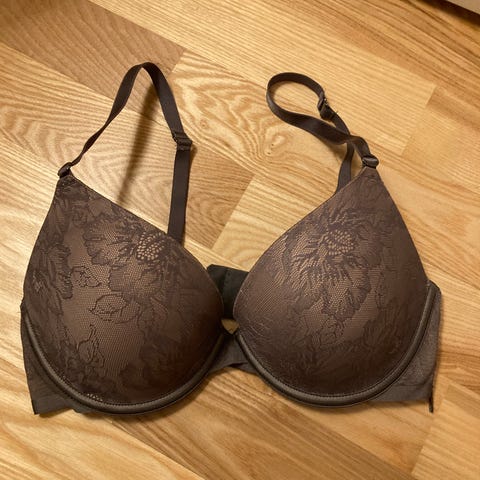 Change bh til kvinder i str. 65 DD med push up. Justerbare stropper og lukning bagpå. Let vatterede skåle med diskrete striber og blondekant langs overkanten. Velegnet som hverdags-bh.