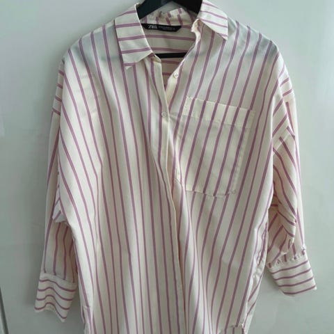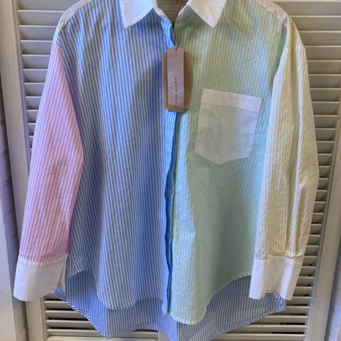 H&M sæt bestående af skjorte og shorts til dame. Sættet er i bomuld og har orange og hvide striber. Skjorten har korte ærmer og gennemgående knaplukning foran. Shortsene har elastik i taljen for justerbar pasform. Størrelse er one size. Velegnet som afslappet hverdagssæt eller loungewear.