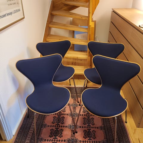 Sælger 6 stk. Arne Jacobsen 3107 Syverstole i hvid.