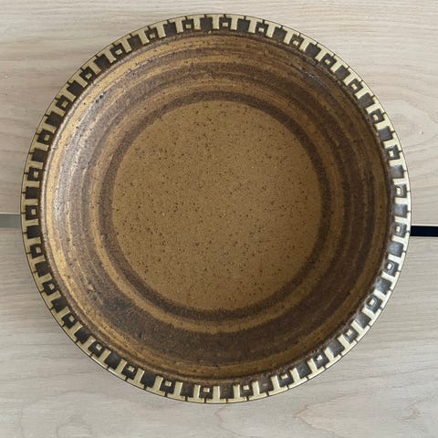 Et meget smukt og meget velholdt keamikfad fra 70’erne. Stort set uden brugsspor. Produceret hos Scheurich West Germany. Et af de mere sjældne designs med grøn bladdecor. Modelnr: 346-26. Ø: 26,5 cm. Kr 395,-
