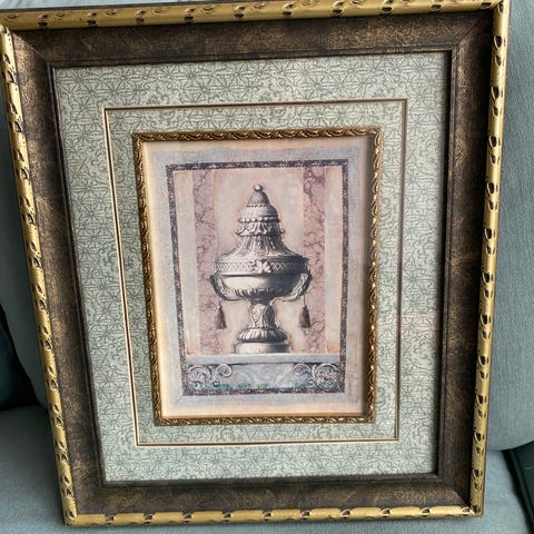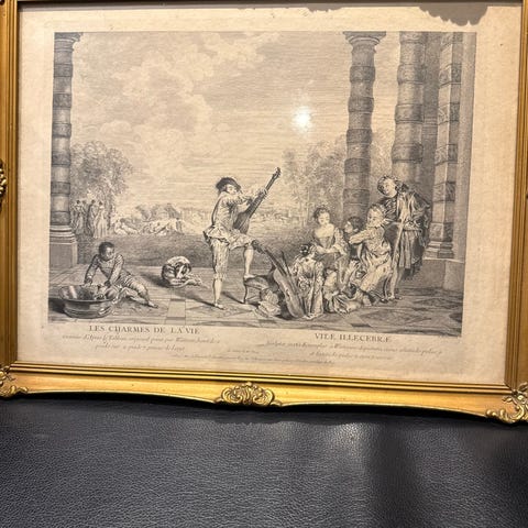 Stort flot farvetryk indrammet bag glas, 93 x 58 cm.