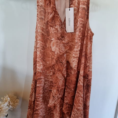 En flot slå om kjole. Kun brugt en gang. Nypris 700 kr. Lille str. XL svarer til str. 38/40