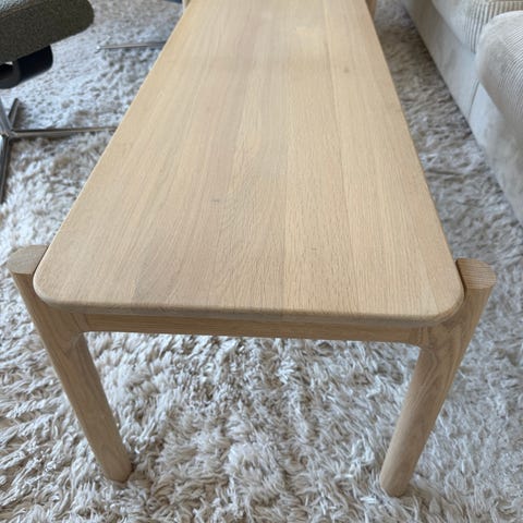 Dette sofabord er skabt i massivt, ovntørret egetræ og formet med respekt for træets naturlige struktur og liv. Hver planke fortæller sin egen historie – med åretegninger, nuancer og små detaljer, der gør bordet helt unikt.
