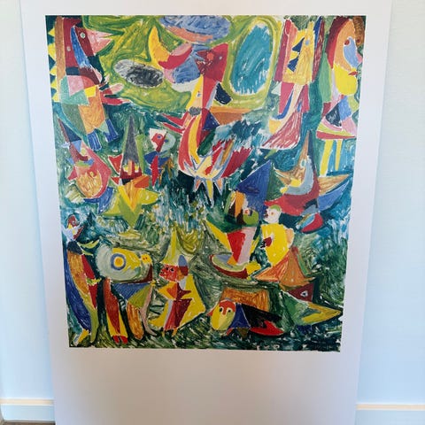 77/57 cm litografi af jon Pilkington fra edition Copenhagen i smukke farver og hvid træ ramme nu kun 4000 kr