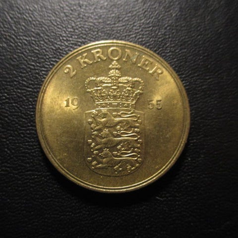 2 kroner 1956 unc, flot ucirkuleret kv. 0-01 - se billeder